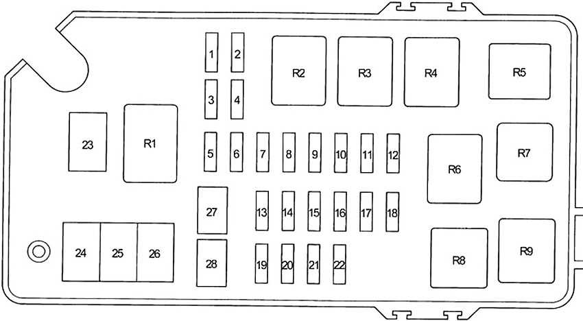 | 26 | 100 | Реле задних фонарей, «PWR OUTLET (FR)», «PWR OUTLET (RR)», «DEFOG», «STOP», «ALT-S», «AM1», «ABS» | |