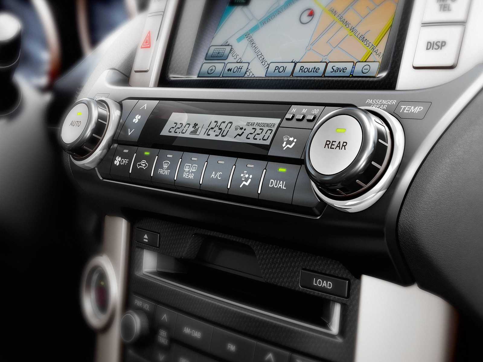 Кнопки в салоне Прадо 150 также имеют значение. Например, на панели контроля за температурой внутри транспортного средства.