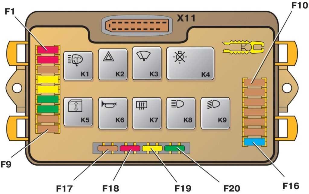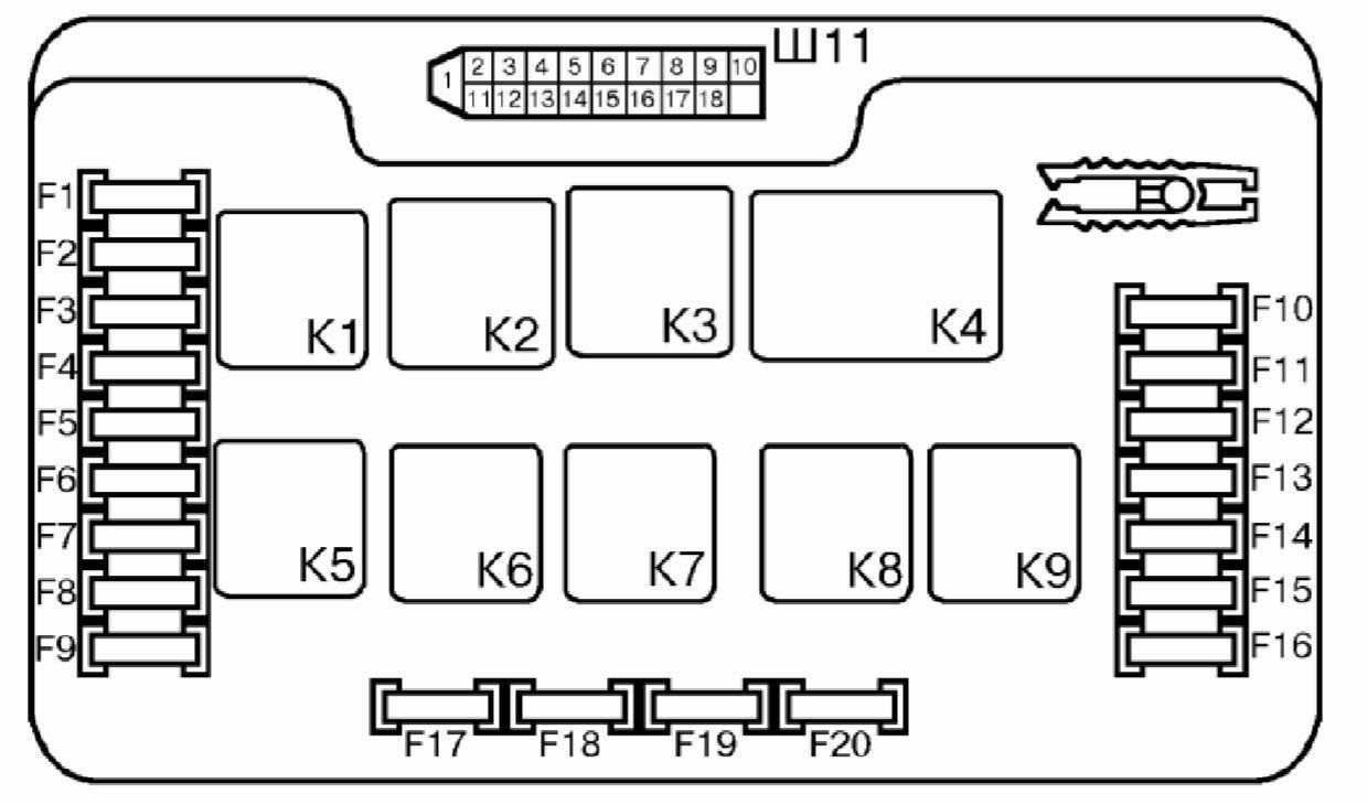 Теперь рассмотрим функционал реле в блоке предохранителей ВАЗ 2115