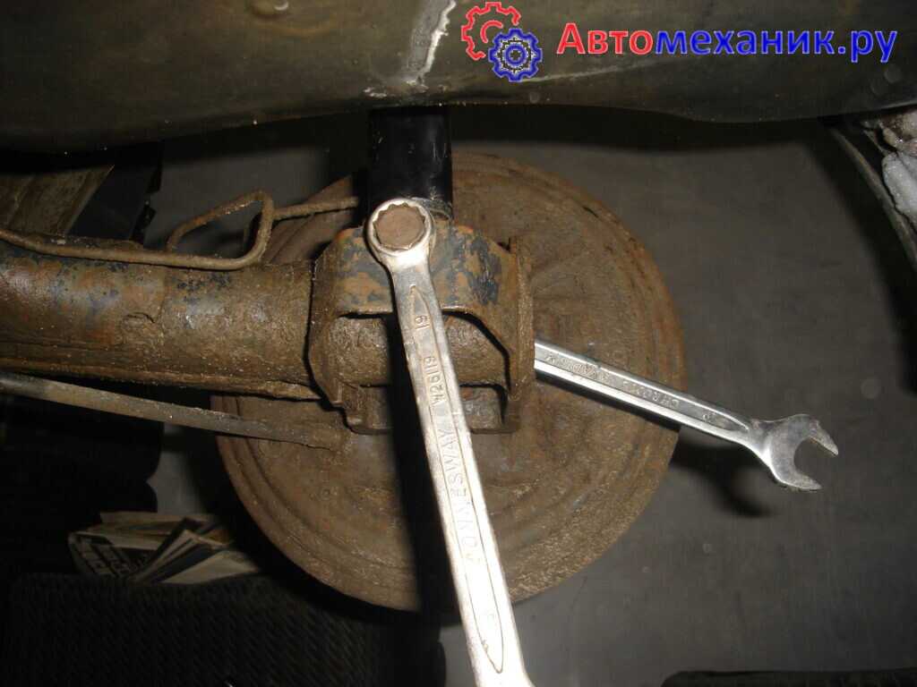 - После срывания указанных двух гаек с места можно продолжать разборку. Выдомкрачиваем требуемое колесо и снимаем его;