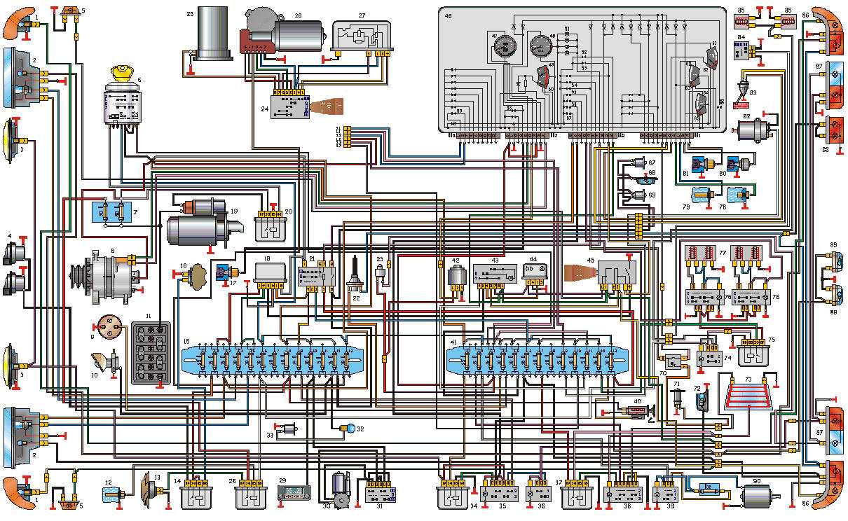 При техническом обслуживании электрооборудования или ремонте чаще всего происходит снятие нужного блока или частичное отключение проводки, тут-то и понадобится принципиальная схема электропроводки в цвете, которую вы сможете посмотреть и скачать абсолютно бесплатно!