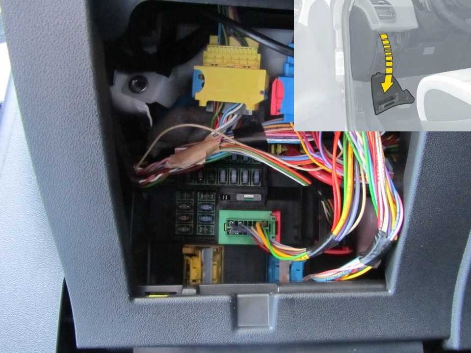 Монтажный блок расположен в нижней части панели управления со стороны водителя.