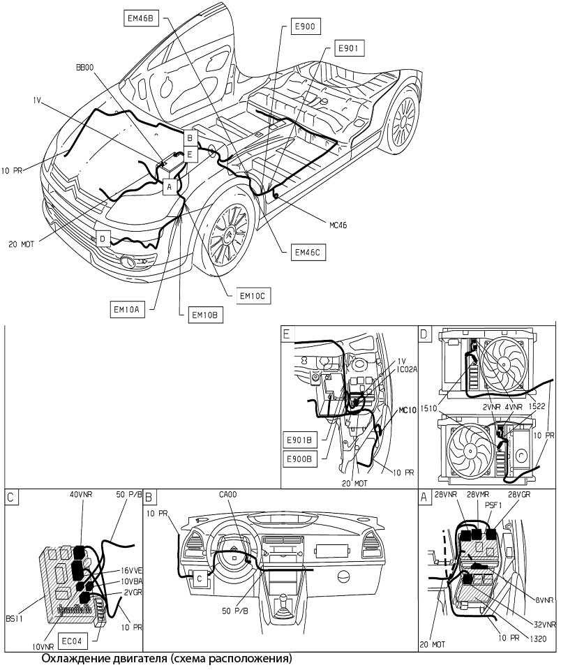 Система охлаждения двигателя TU5JP4(NFU) монтажная схема