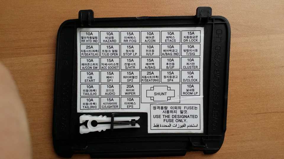 Внимание : При замене плавкой вставки используйте только новую плавкую вставку с таким же или более низким значением номинального тока. Замена схема предохранителей соната 5 вставок цепей вспомогательного оборудования Блок предохранителей, защищающих цели освещения и другое электрооборудование, расположен под панелью приборов схема предохранителей соната 5 сиденья водителя. Если Вы считаете, что перегорел предохранитель, выполните следующее: 1