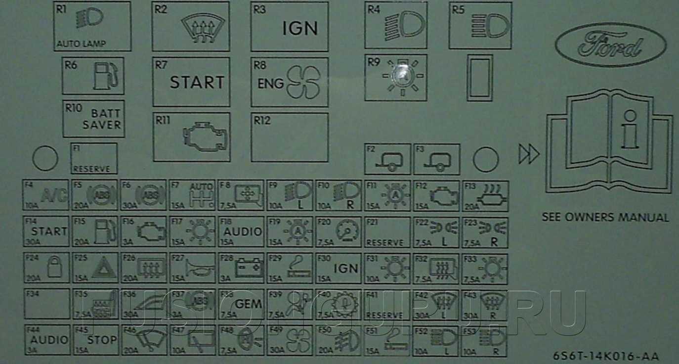 Назначение предохранителей в монтажном блоке в салоне форд фьюжен, форд фиеста.F1 — Резерв