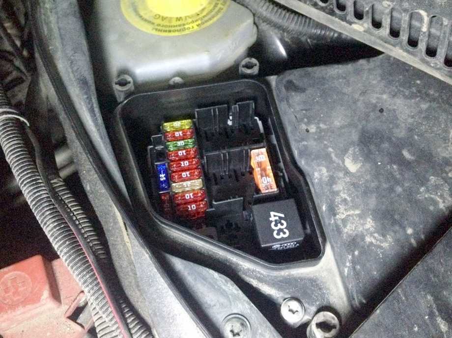 Данный блок реле и предохранителей размещен в воздухоприемном отсеке подкапотного пространства.