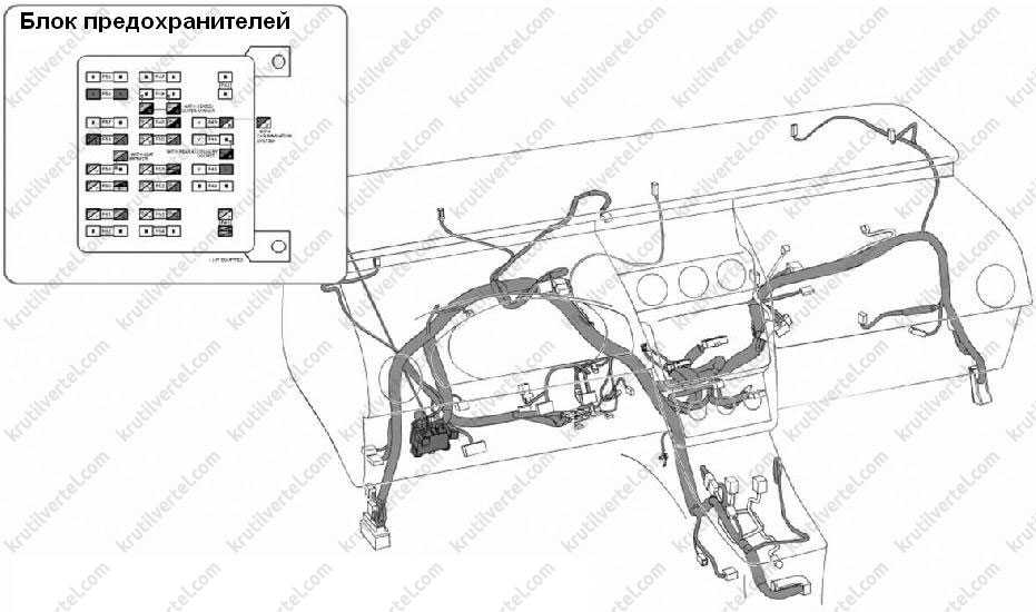 Схема расположения предохранителей в блоке под панелью приборов.