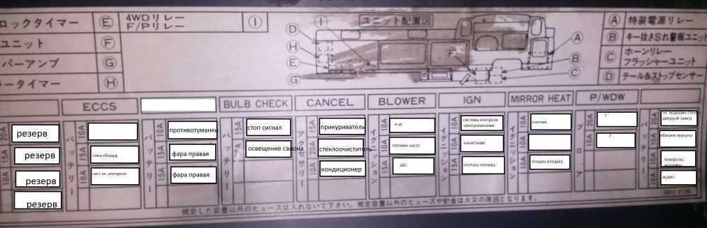 Карта предохранителей бардачка есть в самом бардачке. ). а вот модуль реле и предохр.под кабиной остался неизвестен, только путем изучения проводки. Даже зная минимум английского, все понятно без слов.