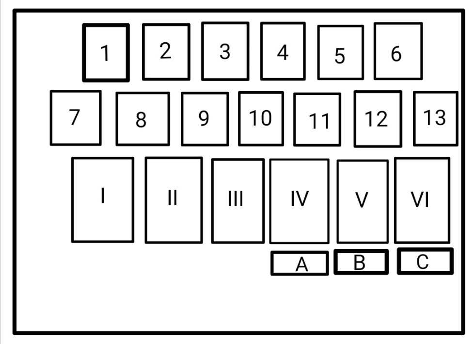 | 19 | 5 / 7,5 А Реле габаритных огней, основной аудиоблок, блок управления электрооборудованием, выключатель зажигания и стартера |