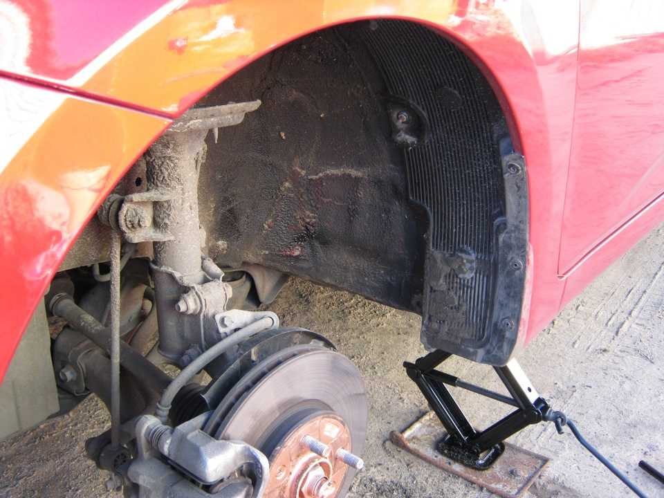 Чтобы добраться до наших важных составляющих, снимаем переднее правое колесо, демонтируем подкрылок. Предварительно снимаем клемму «-» с аккумуляторной батареи, отсоединяем трубку омывателя от штуцера насоса, освобождаем разъем электрического провода от датчика уровня жидкости, а также насоса. Приступаем к выворачиванию болтов, которые крепят бачок к корпусу автомобиля.