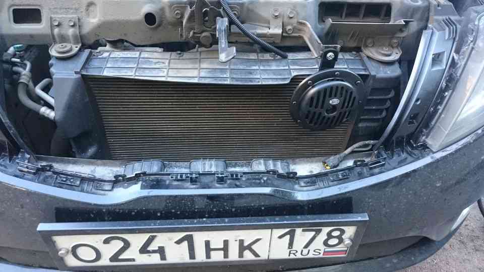 , второй гудок с высоким тоном был прикручен в отверстие, которое было в усилителе бампера, но пришлось его развернуть в сторону радиатора.