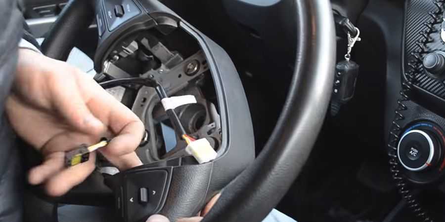 Прокладка провода по специальным нишеобразным каналам, подключение питания кнопок способом «штекер + клемма» и установка рулевого колеса на колонку в обратном порядке. Возврат подушки безопасности и клавиши клаксона на своё штатное место.