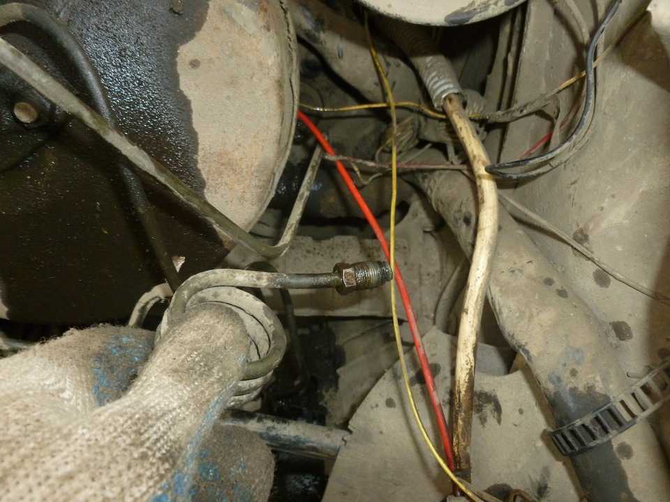 3. Разложите под главным цилиндром ветошь для впитывания жидкости. Отсоедините от цилиндра питающий шланг и заткните отверстия, чтобы не пропивать жидкость далее и чтобы грязь не попала в систему.