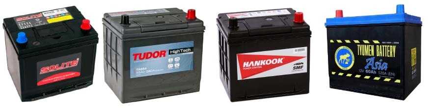 Производителем предусмотрена установка на этот автомобиль аккумуляторных батарей в азиатском корпусе. Но практика показывает, что сюда можно ставить и европейские АКБ, схожие по параметрам и размерам. Батареи в обоих вариантах есть в нашем каталоге.