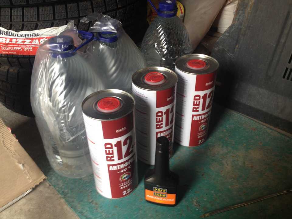 Итак начнем… закупил материалы :антифриз Хадо 12++ 3шт по 2.2 кгпромывка Very lube 1 флаконвода дистилированная 4шт по 5 литров