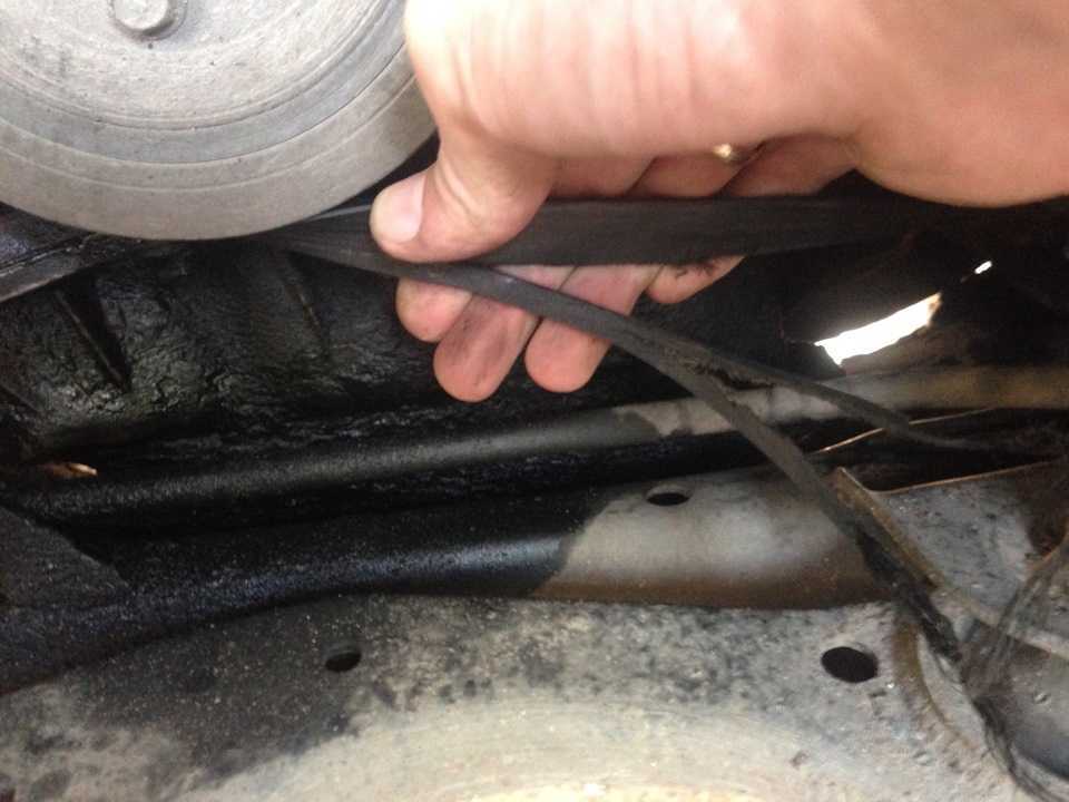 При установке заведите ремень сначала по верхним роликам, потом по нижним (так удобнее делать всю работу в одиночку). Ключом оттяните натяжной ролик и натяните ремень.