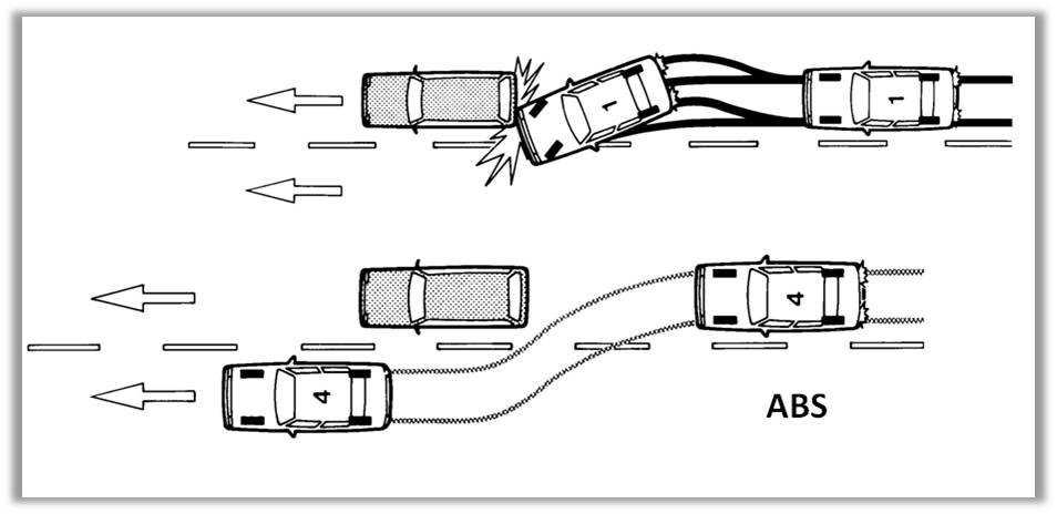 - Получение информации от дополнительного устройства о различных угловых скоростях колес при разном давлении в шинах или о различных рисунках протектора, когда колеса тормозятся по-разному.