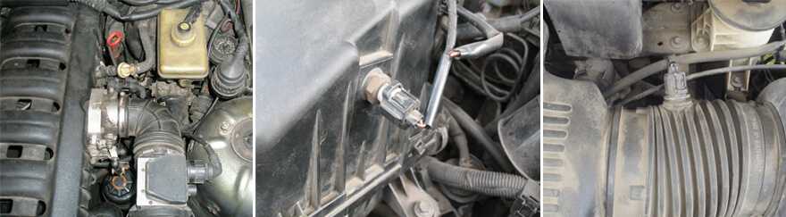 ДТВВ находится на корпусе воздушного фильтра или за ним. Это зависит от конструкции автомобиля. Он выполняется отдельно или может быть частью датчика массового расхода воздуха (ДМРВ).