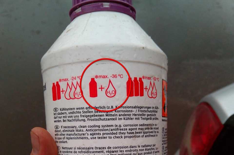 В бачок нужно заливать неразбавленный антифриз, в системе останется около 50 % воды, так что в итоге образуется смесь нужной концентрации. Если после этого двигатель перегревается, не идёт тёплый воздух от нагревателя, то нужно избавиться от воздуха. Пока двигатель тёплый, нужно открутить крышку бачка, воздух выйдет из системы, уровень хладагента понизится. Эту процедуру повторять до тех пор, пока уровень жидкости не будет оставаться неизменным.