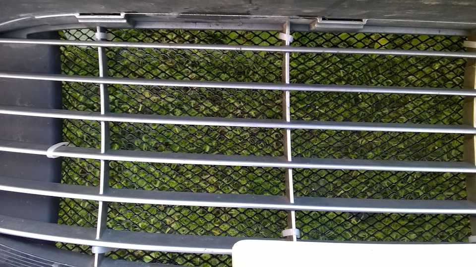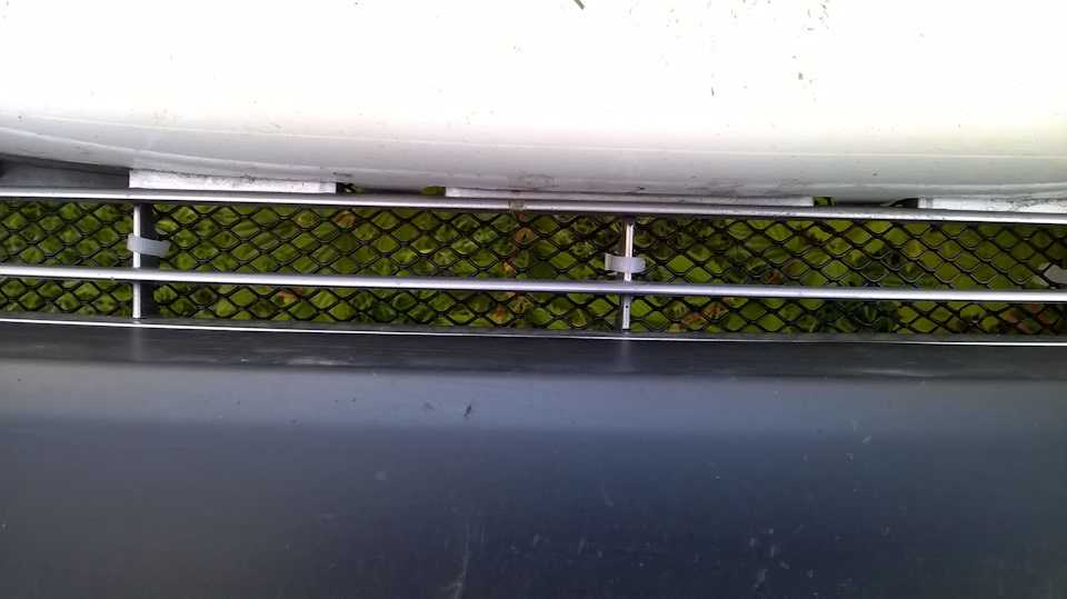 Всем привет. В выходные неожиданно выдалась сухая погода, и после стрижки газона я решил заняться действительно полезным делом. Сетка в бампер куплена в начале июня и давно каталась в багажнике, ожидая своего звездного часа, но все как-то находились различные дела — это ж дача. Прикупил нейлоновые хомуты (стяжки), взял у тестя ножницы по металлу и достал свой любимый набор инструментов: трещотка и насадки 1/4.