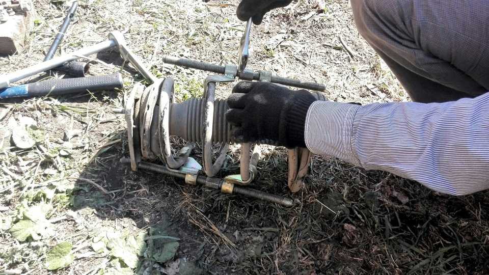 2. Установите приспособление для снятия пружины и сожмите пружину.