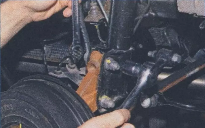 - Вынимаем болты, если потребуется выбиваем. Затем освобождаем поворотного кулак, крепим его к кузову по возможности.