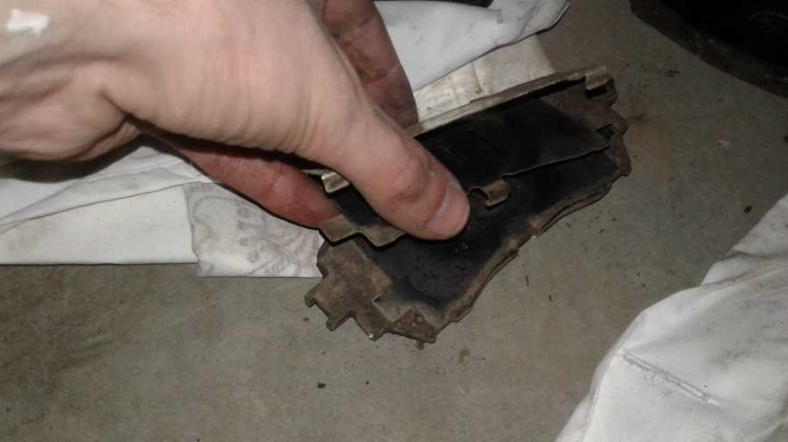 15. Подденьте отверткой и снимите со старых колодок зажимные пластины.