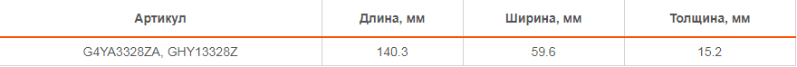 | Оригинальные тормозные колодки | GSYD3328ZA; GSYD3328Z; GSYD3323ZA; GPYB3328ZD; GPYB3323ZG; GPYB3323ZE | Длина: 136.8 мм Ширина: 58.8 мм Толщина: 18 мм | От 4 500 |