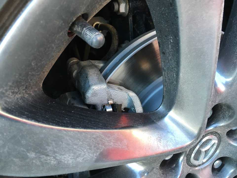 20. Перед тем, как поменять колодки на Мазде 6, смочите очистителем тормозов и очистите металлической щеткой направляющие колодок и край тормозного диска.