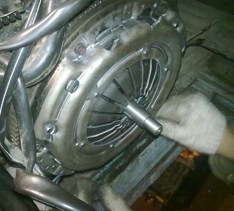 - Затем все элементы смазываются и устанавливаются обратно. Диск центрируется относительно маховика, с помощью оправки, которая имитирует шлицевой конец первичного вала.