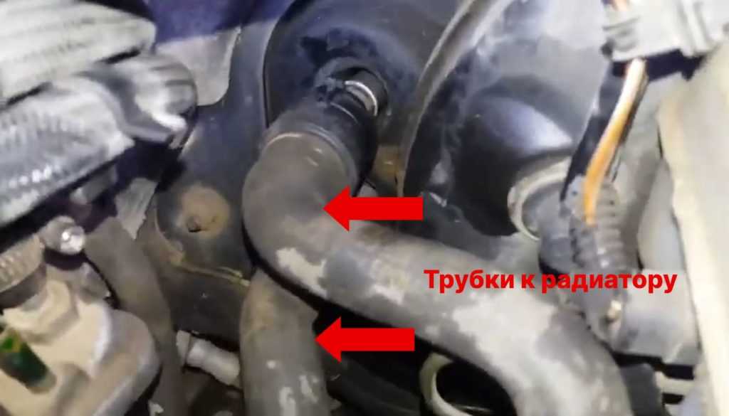 - В механическом отсеке под капотом разгибаем скобку крепежа шланга вакуумного типа и комплекта проводки, идущей на щиток, убрать их в сторону, чтобы можно было добраться до отопительных шлангов.