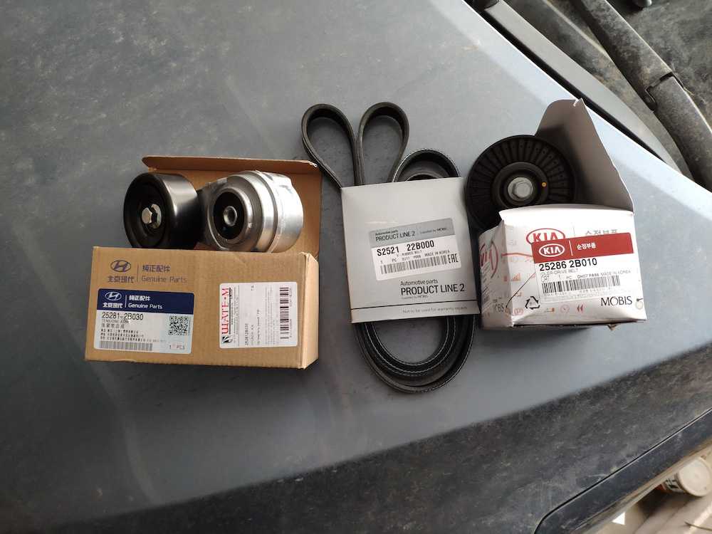 - Ременной натяжитель с артикулом 25281-2B010.Узел использовался на корейских автомобилях с 2012 по 2014 год. Стоимость ролика составляет около 6.5 тысяч рублей.