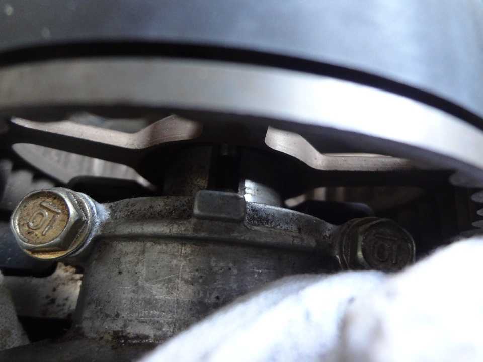 Регулировка клапанов производится исключительно на холодном двигателе и в определенной последовательности: необходимо проворачивать коленвал по часовой стрелке и на определенное количество градусов. Для установки ВМТ на звездочках рапредвалов есть метки — совмещаем их друг на против друга. Когда установлена мертвая точка первого цилиндра берем щуп на 0.20 мм и проверяем зазор между клапаном и рокером на впускных клапанах. Установку производим накидным ключом на «10» и плоской отверткой. Впускные клапана должны быть: 0.21 — 0.25 мм, а выпускные клапана: 0.28 — 0.32 мм