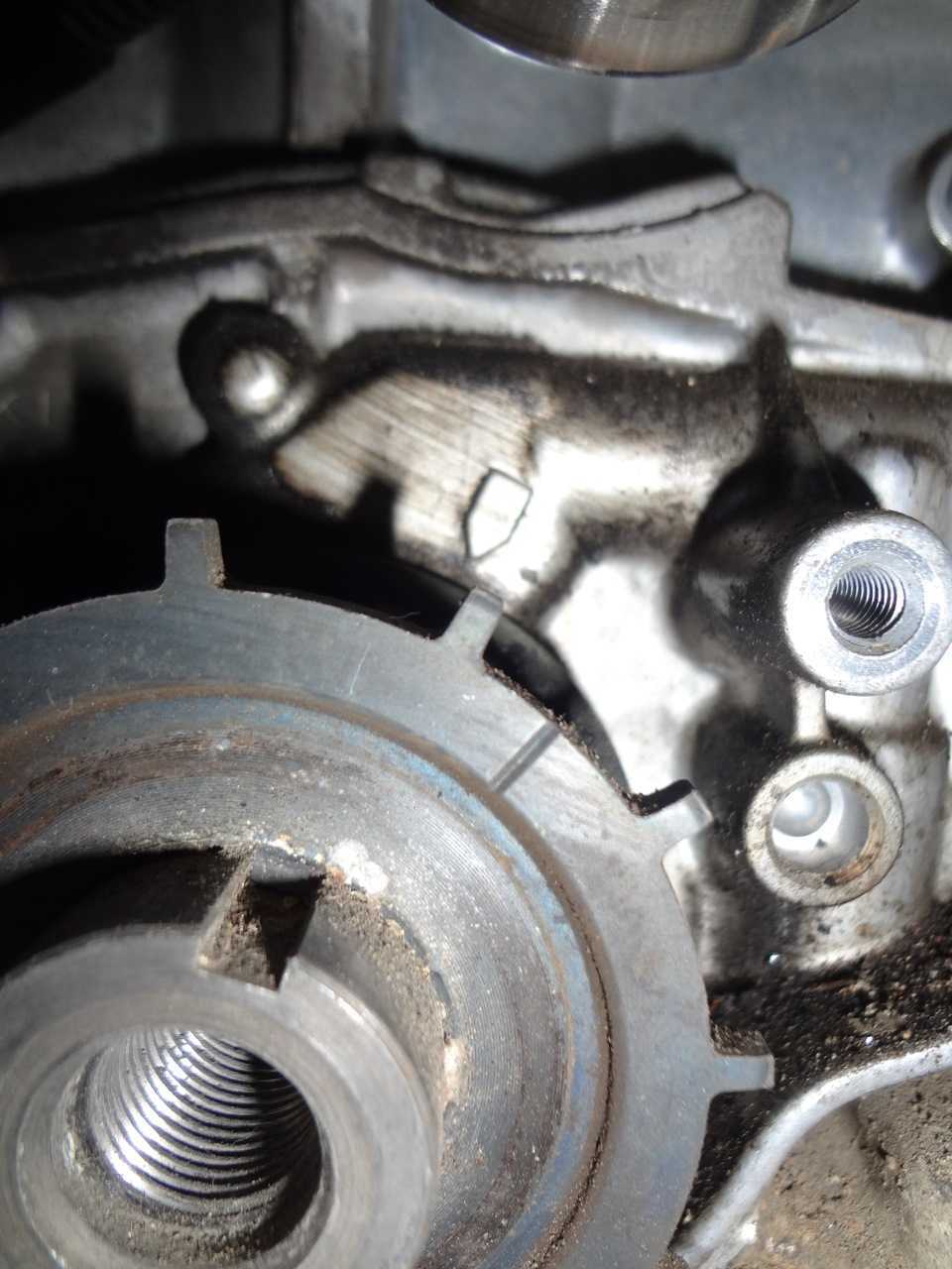 Подставляем емкость под двигатель и откручиваем помпу.. чтоб открутить верхние болты пришлось снять еще одну пластиковую накладку, она закрывала доступ к болтам сверху, и снизу никак не получалось до них добраться (( Пока сливаются остатки антифриза откручиваем болты звездочек распредвалов, аккуратно снимаем звездочки, вытаскиваем шпонки, тыльную шайбу звездочки КВ..