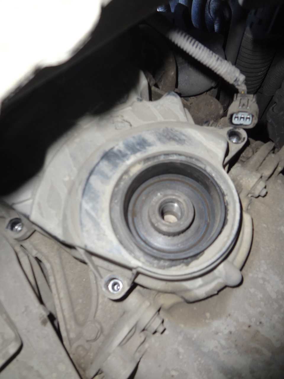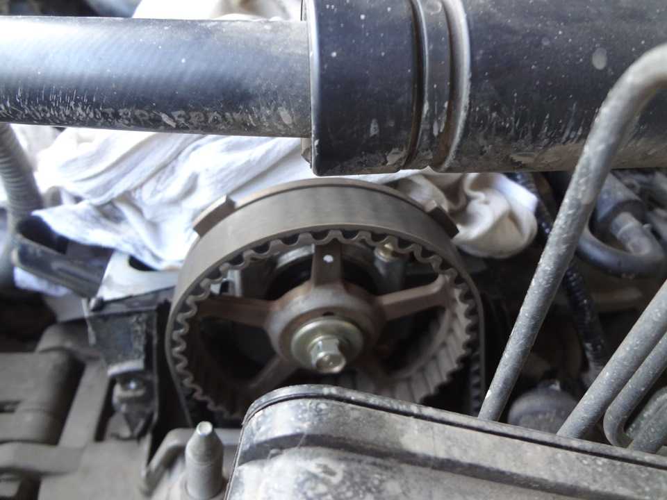 Врашая зубчатый шкив насоса охлаждающей воды, проверяем состояние подшипника насоса (шкив должен крутиться просто, без заеданий и НЕ иметь приметно на ощупь свободного хода). 4. Зрительно убеждаемся в отсутствии потёков охлаждающей воды.