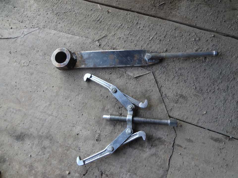 Итак приступим. Первым делом мне отец сделал МЕГА ключ для удержания шкива колена, из гайки на 48 (про размер гайки прочитал на одном из форумов, как оказалось на 48 маловато, нужно на 50, но и на 48 держит хорошо) и универсального съемника, который дал мне мой корефан.