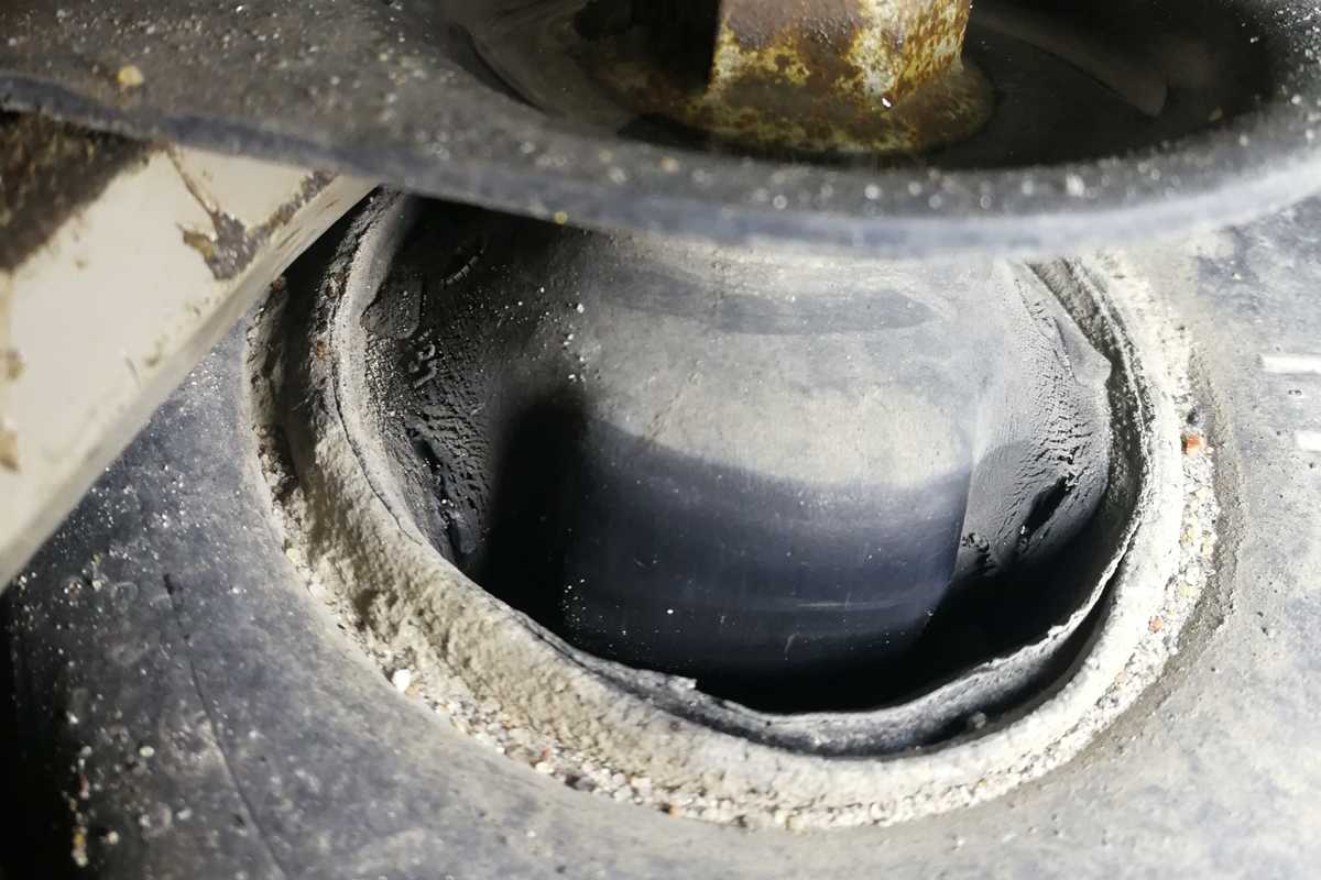 Незначительное отпотевание амортизатора в верхней его части при сохранении характеристик не является неисправностью. При осадке или разрушении резинового элемента верхней опоры телескопической стойки опору необходимо заменить.