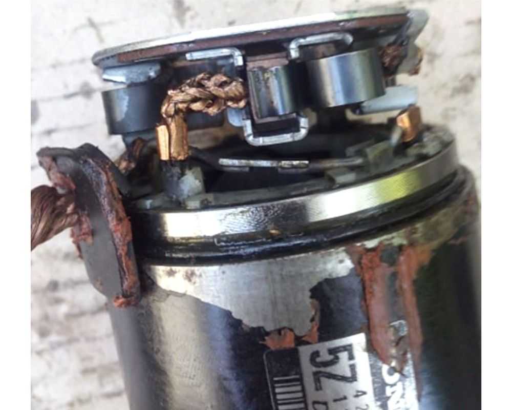 Подключаем клеммы оммометра к якорю, коллектору, измеряем сопротивление. Если стрелка тяготеет к нулю — заменяем якорь новым. Проверяем щетки на них не должно быть трещин, дефектов. В противном случае обновляем. Завершаем сборку деталей в обратной последовательности.