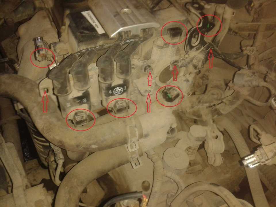 крышка держится на 4х болтах(их размер разный!), двумя из них крепятся разъем датчика(верхний) и крепление какого-то провода(нижний)
