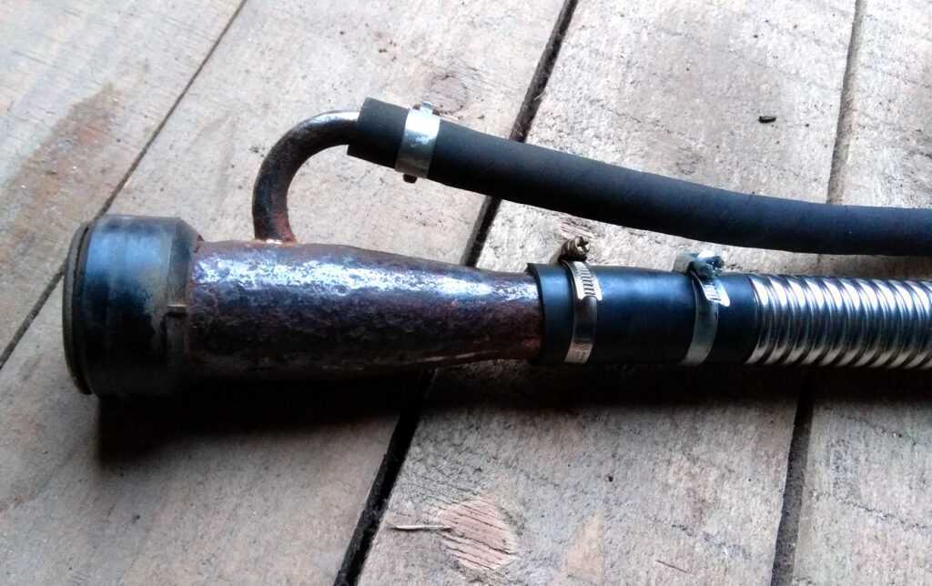 Вторую трубку от патрубка установил на другой конец гофротрубы и стянул хомутом. Вот что получилось.