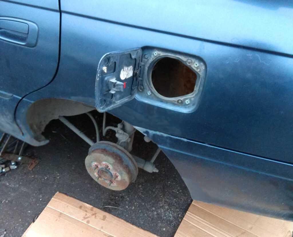 Было замечено сильное подтекание бензина при заправке, решил нужно проверить что случилось. Оказалось труба заливной горловины практически полностью проржавела и появилась дырка в трубе, наверное от попадания в нее камня. Посмотрел стоимость новой горловины в интернете, цена около 5000 рублей (автомобиль Toyota Carina ST190). Посмотрел на разборках, в наличии имеются только в других городах (б/у горловина с доставкой выйдет примерно в 2500 рублей). Так как ездить нужно сейчас, то отремонтировал из материалов, которые можно купить недорого и уже сегодня. Теперь расскажу поподробнее с фотографиями процес ремонта заливной горловины бака, может кому пригодится данное решение для временного ремонта.
