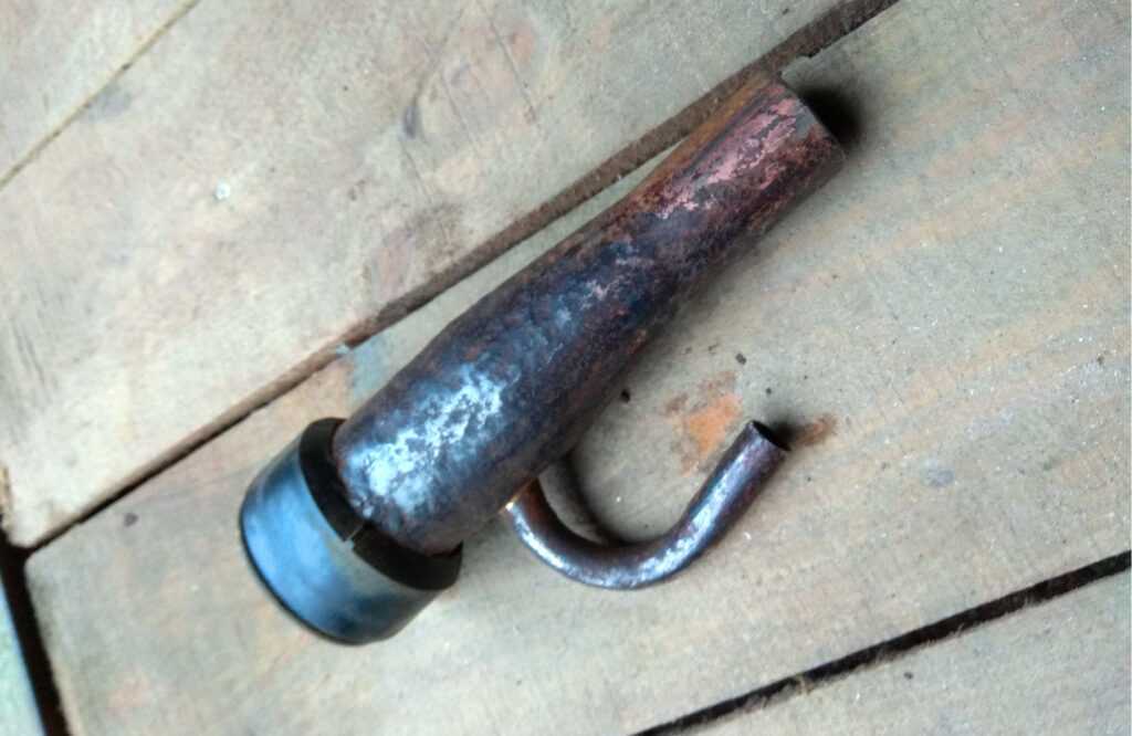 Отпилил начало заливной горловины, она сохранилась в хорошем состоянии. Обработал отпиленную горловину болгаркой от ржавчины и покрыл цинкарем (преобразователь ржавчины).