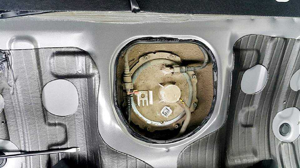 - Найти люк топливного модуля. Используя канцелярский нож, подрезать герметик вокруг крышки лючка. Откинуть её, обеспечив доступ к модулю.