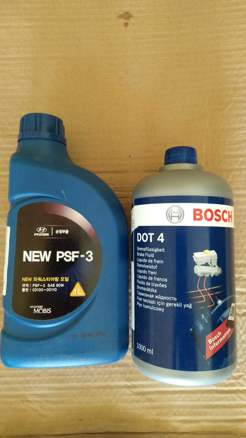 Жидкость для гидроусилителя руля идёт Ultra PSF-3 03100-00100 (что бы вам было полегче, то она имеет красный цвет), либо заливаем Ultra PSF-3 03100-00110 (светло-коричневого цвета). Заливаем 0,9 литра.