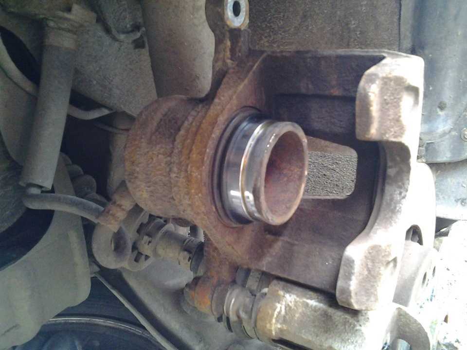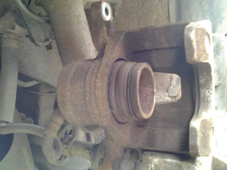 Снимаем суппорт и вдавливаем цилиндр двумя большими пальцами, чтоб он ушел внутрь. Это можно сделать, только если авто простояло более 40 минут и успело остыть