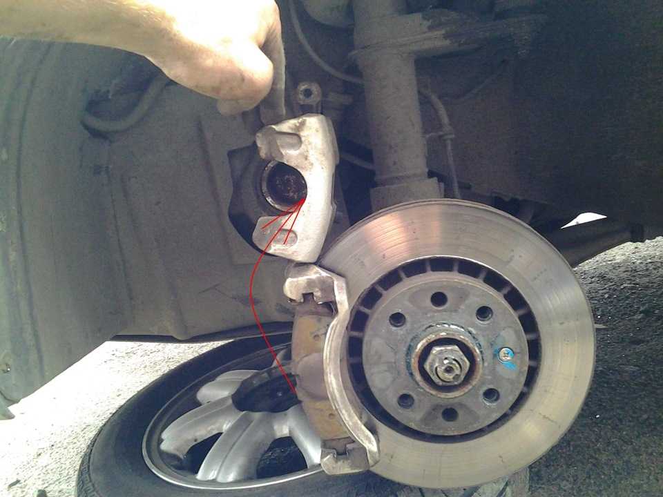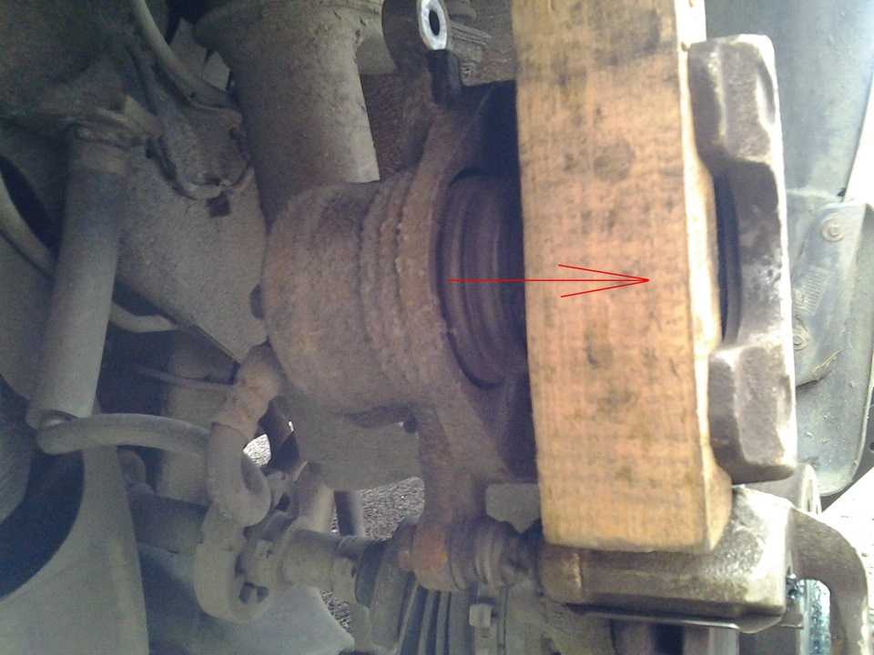 Приподнятый суппорт тормозного механизма переднего колеса.