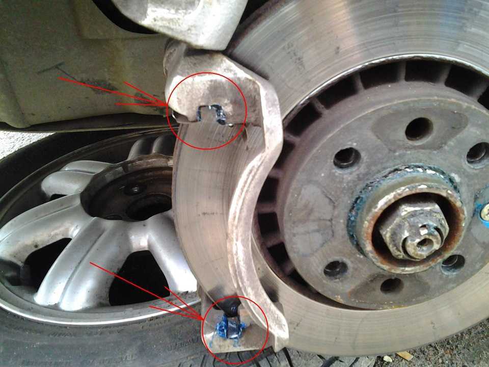 При наличии люфта на креплениях суппорта, обработайте загрязненные участки аэрозольной смазкой типа WD-40.