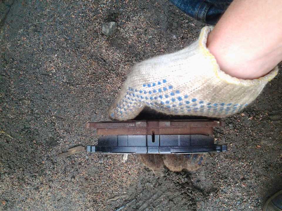 Извлекаем из направляющей тормозные колодки