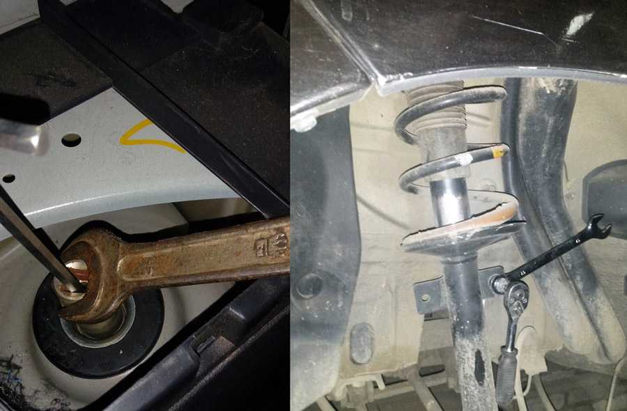 Определившись, какие лучше стойки установить, нужно подготовить автомобиль к ремонту. Автомеханики советуют надеть на основание пружины отрезок резинового шланга. Это исключает возникновение скрипов во время езды.