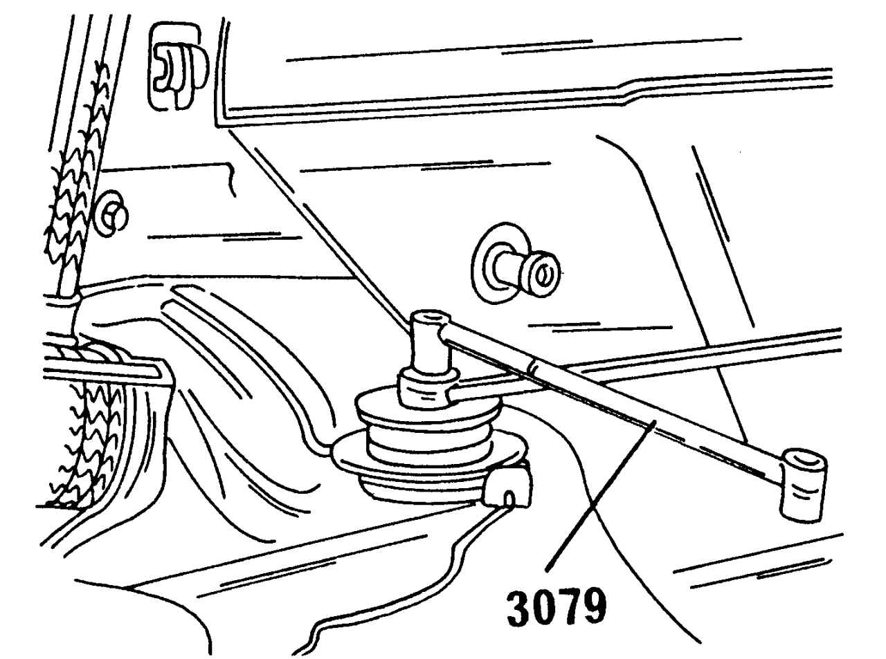 Рис. 279. Использование специального ключа для отворачивания элементов верхнего крепления амортизаторных стоек |